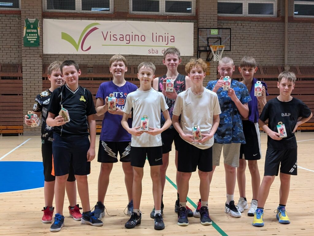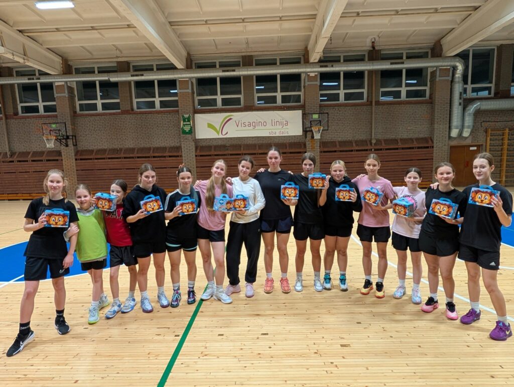 Šią savaitę Visagino krepšinio mokykloje visų vaikų grupių krepšininkams buvo įteiktos kalėdinės dovanėlės – saldainių rinkiniai.